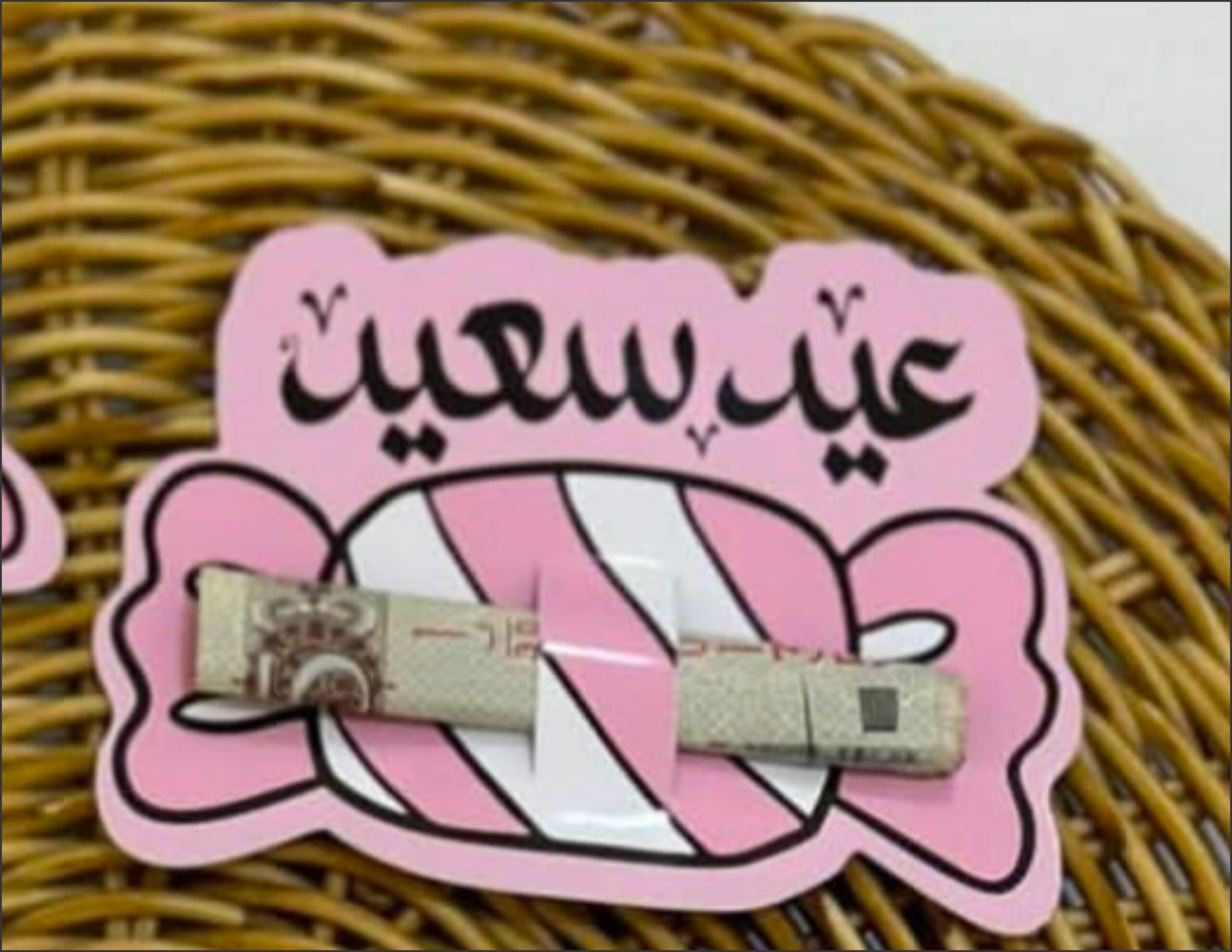 كرت العيد البناتي الكيوت، شكل حلوى وردي مع مساحة للفلووس.. لمسة فرح لأي عيدية 💖